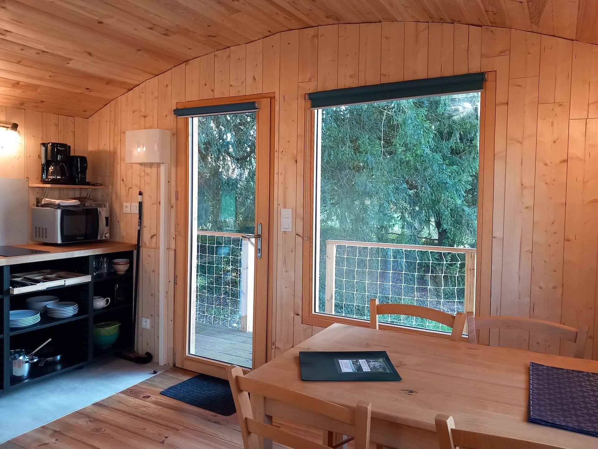 Les cabanes sont très bien équipées pour préparer vos repas : plaque de cuisson vitrocéramiques, micro-onde, cafetière, bouilloire électrique, grille-pain, réfrigérateur