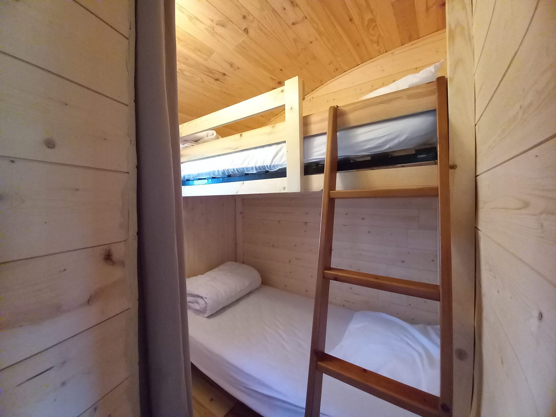 Il y a 5 cabanes disponibles pour 4 personnes (1 lit double et 2 lits simples superposés ou 1 lit double et 1 convertible). Le choix de la cabane se fait dans le déroulé de la réservation.
