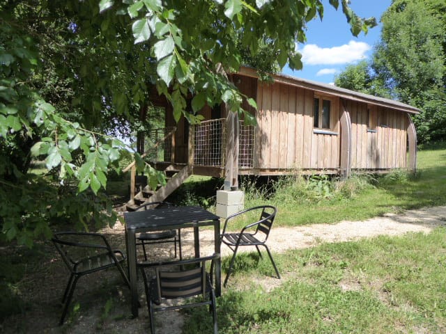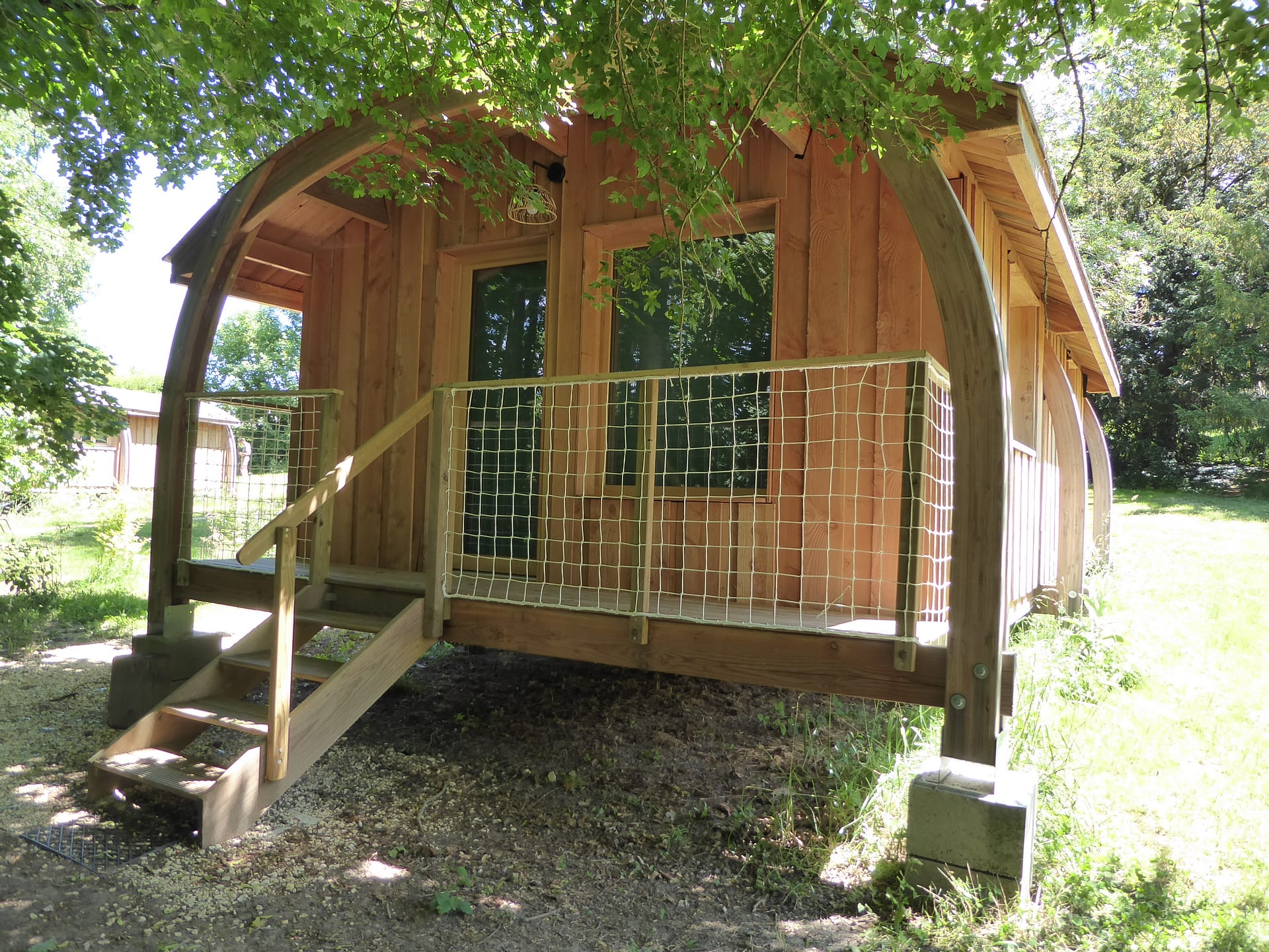 Nous avons construit nos cinq cabanes dans une prairie autour de plusieurs bosquets. Elles ne sont pas très éloignées de la piscine et des granges. Tout le parc est à votre disposition pour jouer, vous détendre, vous promener. Elles sont le point de départ idéal pour profiter de la région, visiter et partir à la rencontre d’artisans et de producteurs.