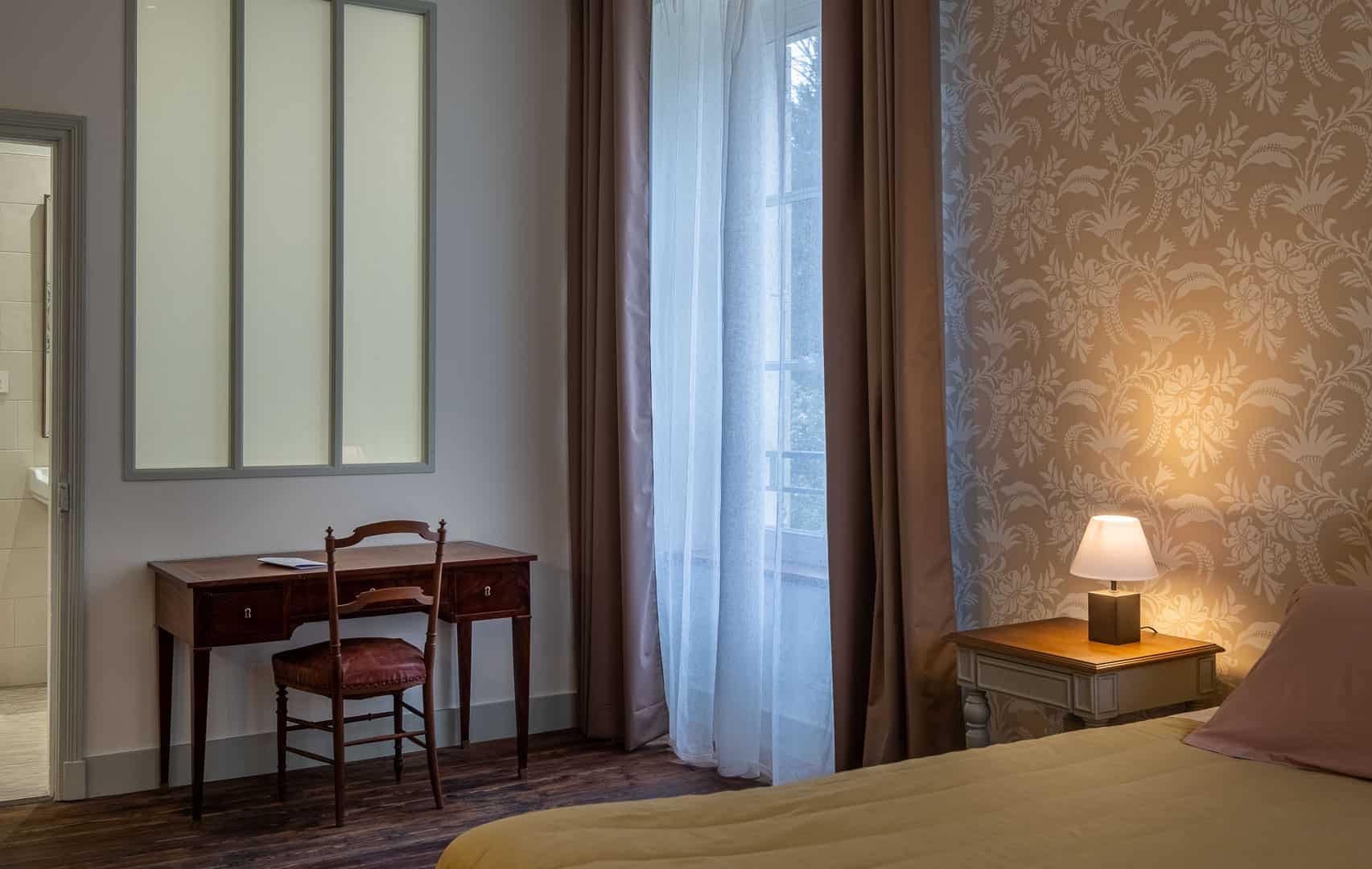 Chambre de 25 m2 pour 2 personnes avec vue sur le parc vallonné. Son petit balcon vous permettra de profiter du soleil couchant. Elle dispose d’une salle d’eau avec douche et WC. Vous pouvez associer la chambre Passiflora avec la chambre de Madame pour créer une suite pouvant accueillir jusqu’à cinq personnes.