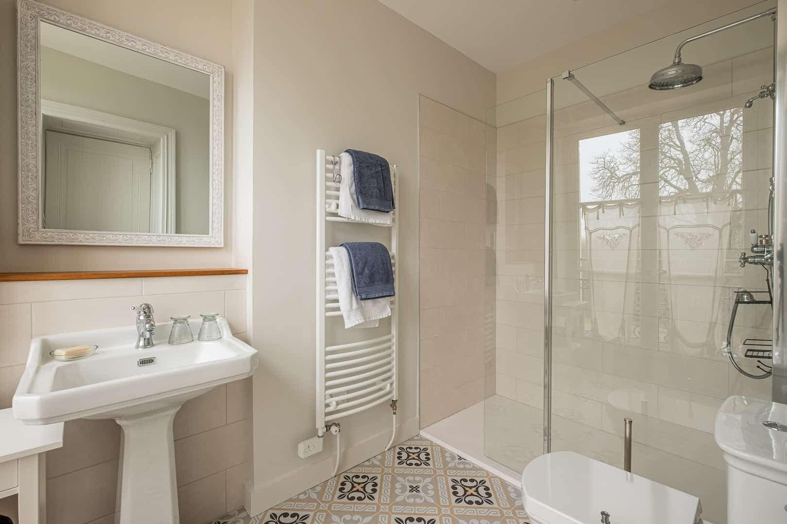 Chambre de 19 m2 pour 2 personnes avec double orientation et vue sur le parc vallonné. Elle dispose d’une salle d’eau avec douche et WC. Un petit balcon vous permet de profiter du calme du parc sans sortir du château !